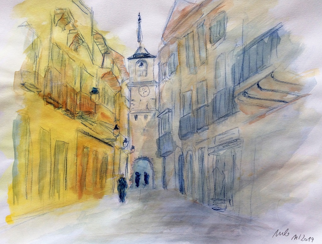 Wenn ich mich selbst einschätzen sollte, dann ist eigentlich die Zeichnung oder schnelle Skizze meine Stärke und vielleicht auch Leidenschaft. Keine Wunder, dass ich beim Malen auch eher gegenständlich unterwegs bin und gerade bei Stadtbildern und Architekturen ist die Skizze in jedem Fall der erste Schritt zum Gemälde.