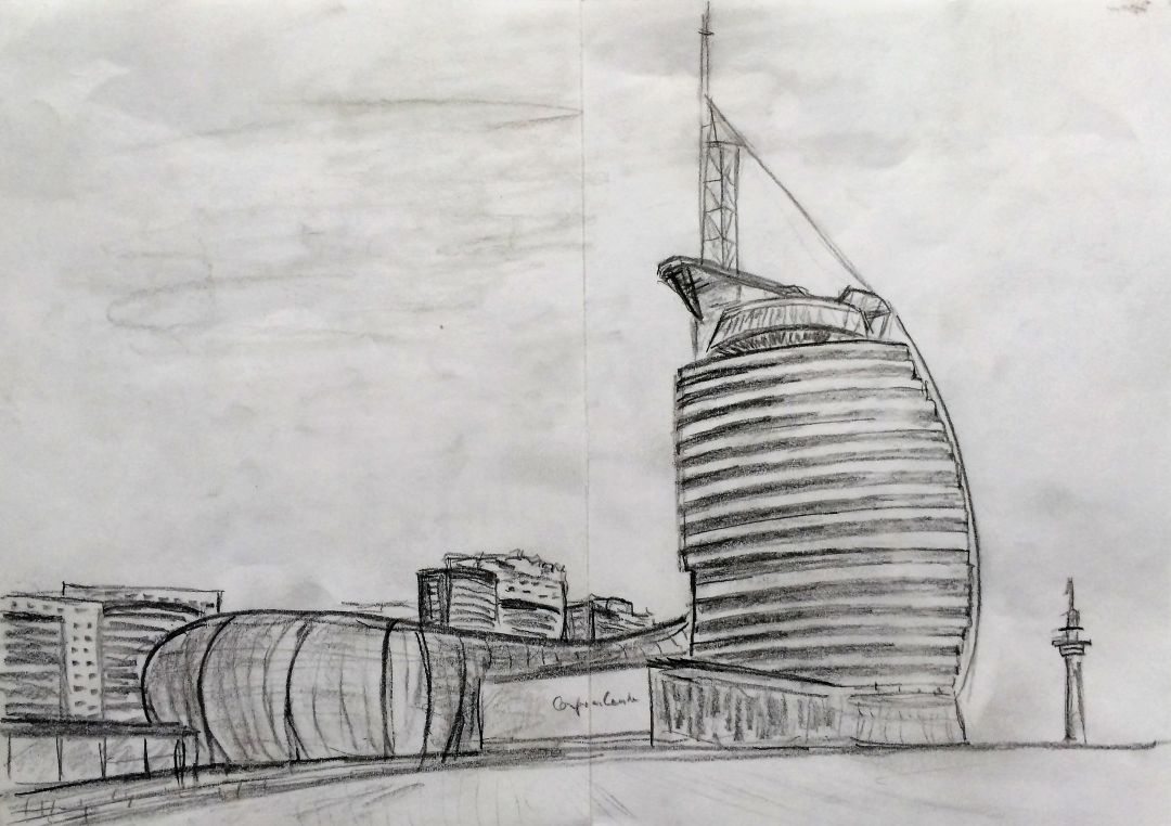 Als Bremerhavener ist man natürlich in der eigenen Stadt auf der Suche nach Motiven. In der Sommerakademie 2016 habe ich an dem Workshop „urbane Skizzen“ teilgenommen. In der Gruppe war es leicht, die Hemmschwelle zu überbrücken und sich in der Öffentlichkeit hinzusetzen, den Skizzenblock raus zu holen und drauf los zu zeichnen. Ansonsten habe ich eher im Urlaub Reiseskizzen angefertigt.
