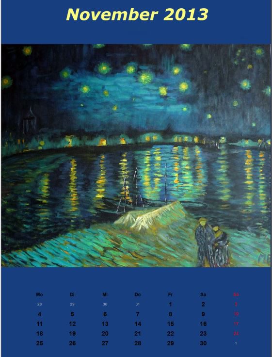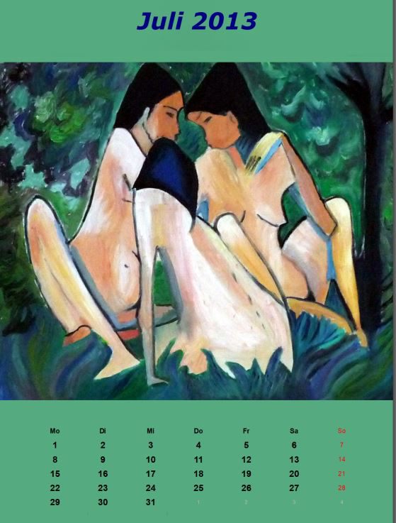 Ergänzt sind die Aquarellbilder von ein paar Öl- und Acrylbildern, die ich in dieser Zeit vorwiegend in Anlehnung an die Werke großer Künstler erstellt habe.