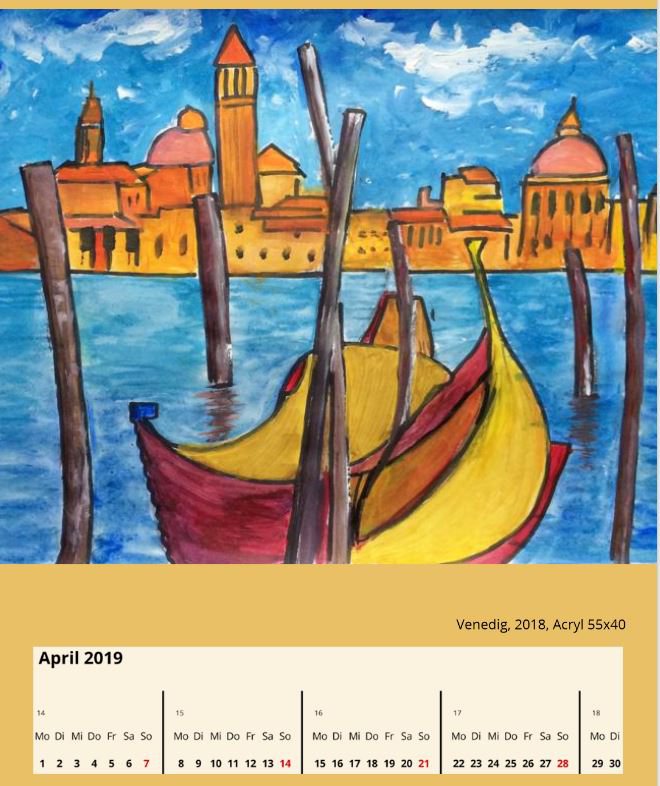 Der Kalender 2019 zeigt wiederum, dass es den „typischen Beckmannshagen“ nicht gibt. Ich möchte mich nicht einengen lassen. Als Hobbymaler male ich zunächst für mich weil das Malen mir Freude bereitet. Und so nehme ich mir die Freiheit heute ein Porträt in Öl zu malen, morgen eine abstrakte Landschaft in Aquarell, und übermorgen… . Erst später kommt der Betrachter ins Spiel – und da freue ich mich natürlich über Feedback. Und so unterschiedlich wie meine Bilder ist auch der Geschmack „meines Publikums“.