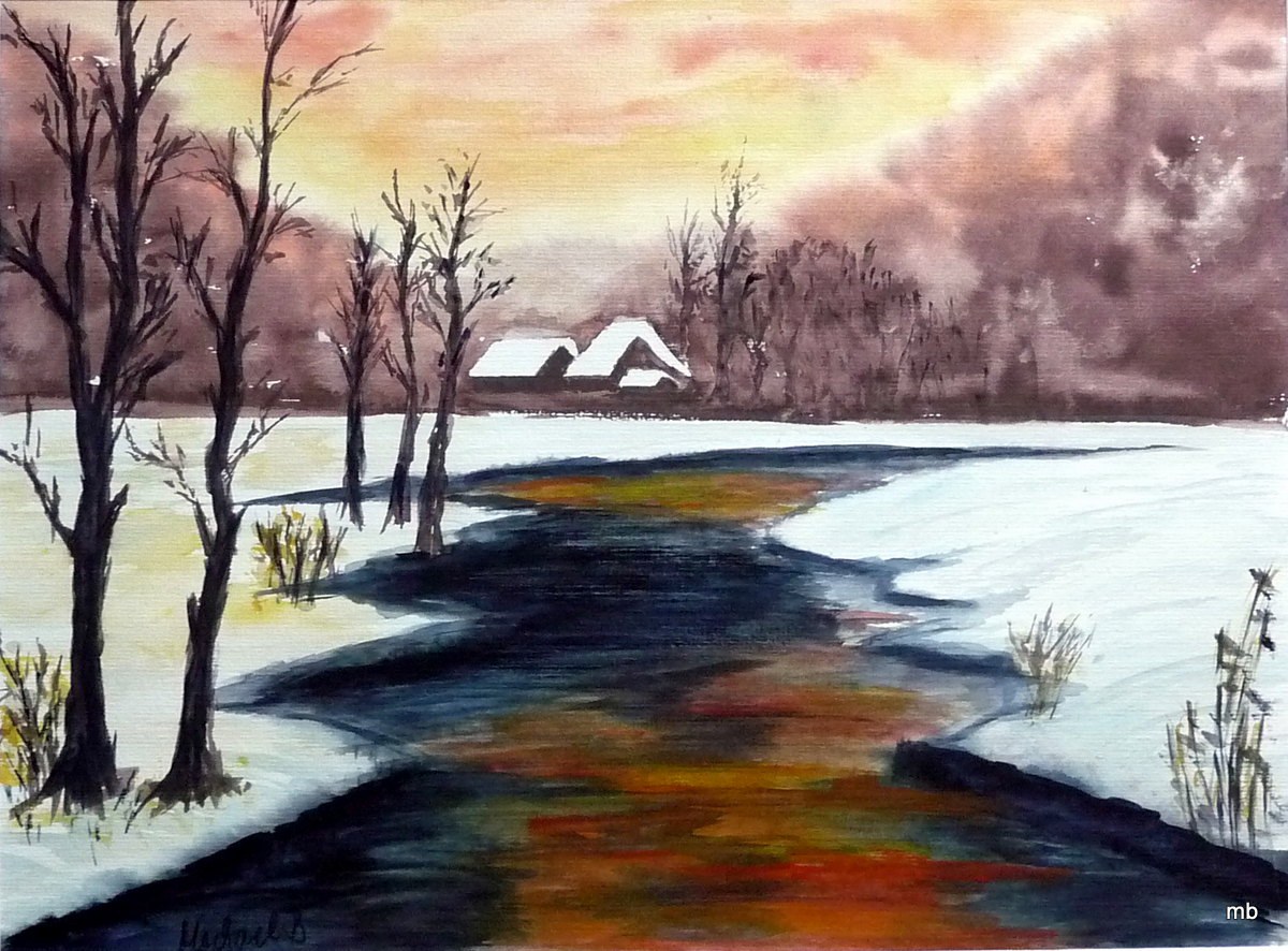 Bei der malerischen Urlaubs- Erinnerung bevorzuge ich dann in der Regel Aquarell – es sei denn ich habe eine Abstraktion im Sinn. In dem Fall greife ich auch gerne zu kräftigen Acryl-Farben.