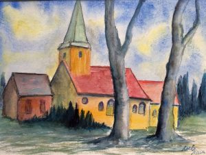 Mir hat es vor allem der Blick über die Friedhofsmauer auf die Südfassade der alten Kirche angetan. In mehreren Versionen habe ich das Motiv auf unterschiedlichste Art verarbeitet.