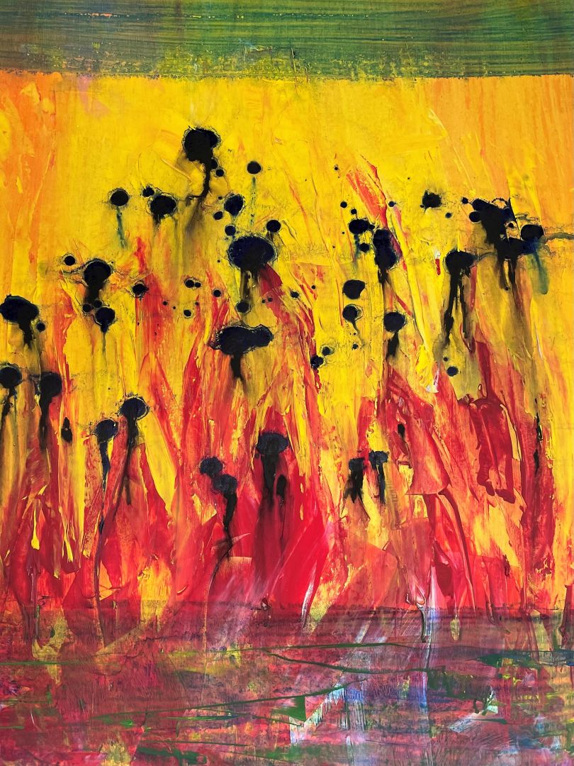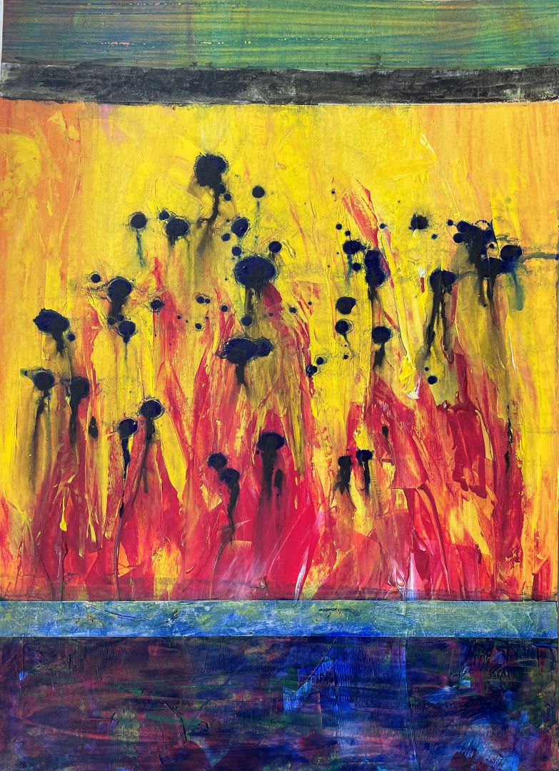 Ein Hauptthema der Sommerakademie 2021: Farbe als eigentliches Motiv unserer Malerei. Im Spannungsfeld zwischen gezielter Absicht, künstlerischem Prozess und Zufall sollen wir unsere kreativen Fähigkeiten, insbes. Fantasie und assoziatives Denken fördern. Dabei beherzigen wir die Farbenlehre, erforschen Kontraste und Harmonien, lernen die Raumwirkung von Farben kennen, die Bedeutung von Grauwerten und Farbverläufen und entwickeln so unser ästhetisches Farbempfinden.