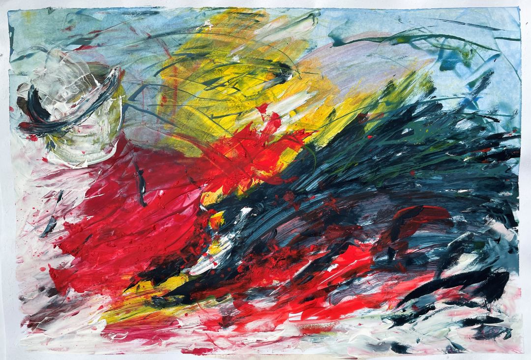 Die Einstiegsaufgabe: mit den Grundfarben ein emotionales Gemälde zu entwickeln.