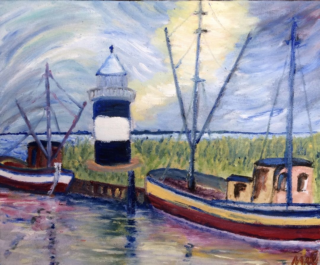 Kutter, Leuchtturm und Himmel ist ein Lieblingsmotiv von mir.