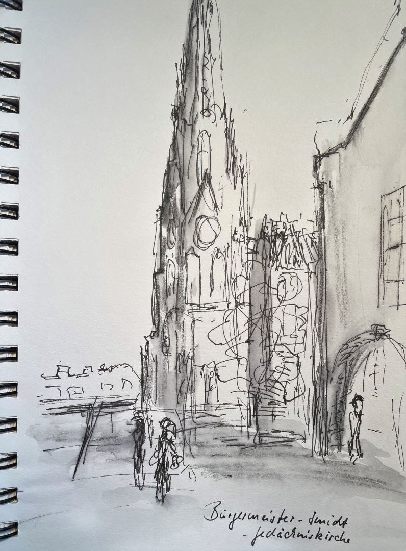 man kommt zur Ruhe, lässt sich Zeit um Bilder und Eindrücke aufzunehmen und aufs Papier zu bringen – eine intensive Art eine Stadt zu erkunden. Für mich ist das wie ein kleiner „Aktiv-Urlaub“.