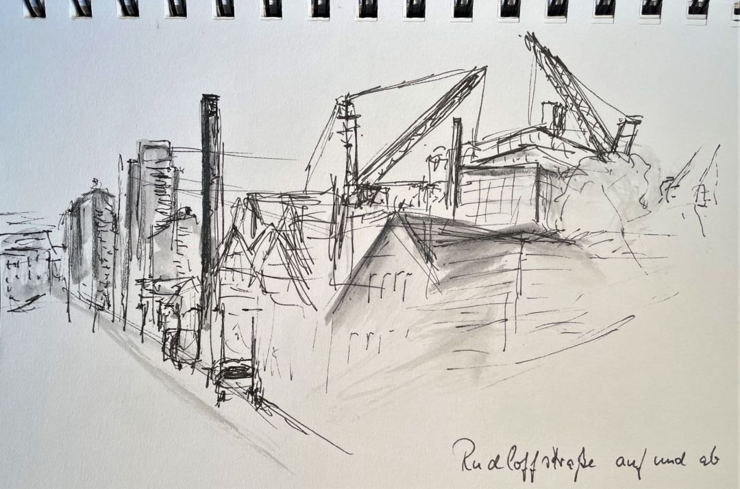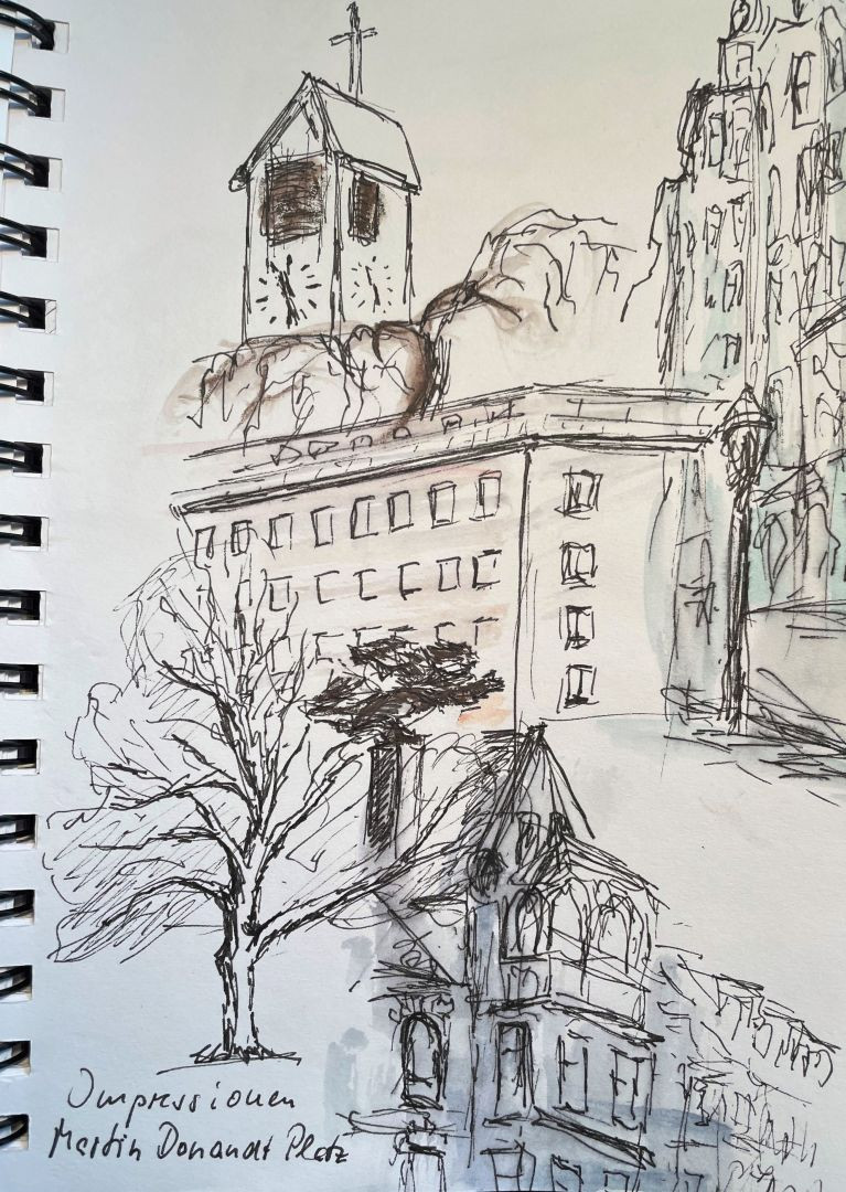 „Urban Sketching“, VHS-Kurs mit Martina Reichelt vom 25.4. bis 29.4.22.